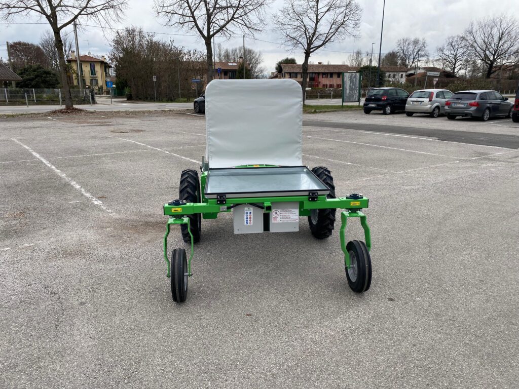 FAR-GREEN CBM è l’agevolatrice elettrica ideale per ridurre drasticamente i tempi di raccolta di asparagi verdi e altri ortaggi. Con carreggiata fissa, è versatile e adatta anche per altre lavorazioni agricole. Questa agevolatrice si distingue per le regolazioni di altezza e il comfort dell’operatore, grazie a una comoda centralina per il comando di trazione e un sedile registrabile. Inoltre, la FAR-GREEN CBM è dotata di un pacco batterie italiane di ultima generazione, un carica batteria a tenuta stagna e una cappottina parasole cucita ed elettrosaldata artigianalmente, per garantire la massima durabilità e protezione. Un’ottima scelta per ottimizzare la tua raccolta con efficienza e comfort.