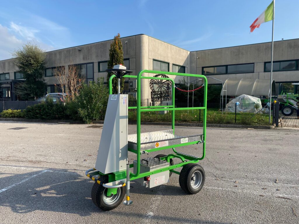 FAR-GREEN EGP è un’agevolatrice elettrica progettata per la raccolta di ortaggi e frutti in altezza, da 60 a 110 cm, offrendo una soluzione efficiente per serre e frutteti. Grazie alla sua versatilità e velocità, permette di ridurre drasticamente i tempi di raccolta. Questa agevolatrice è l’unica a offrire regolazioni complete di altezza e comfort operatore, con una pratica centralina per il comando di trazione e un pedale presenza uomo per garantire sicurezza durante l’uso. La FAR-GREEN EGP è dotata di un pacco batterie italiane di nuova concezione, un carica batteria a tenuta stagna e una scaletta per salire a bordo, assicurando praticità e affidabilità. Un’ottima scelta per chi cerca una soluzione rapida ed ergonomica per la raccolta in altezza.