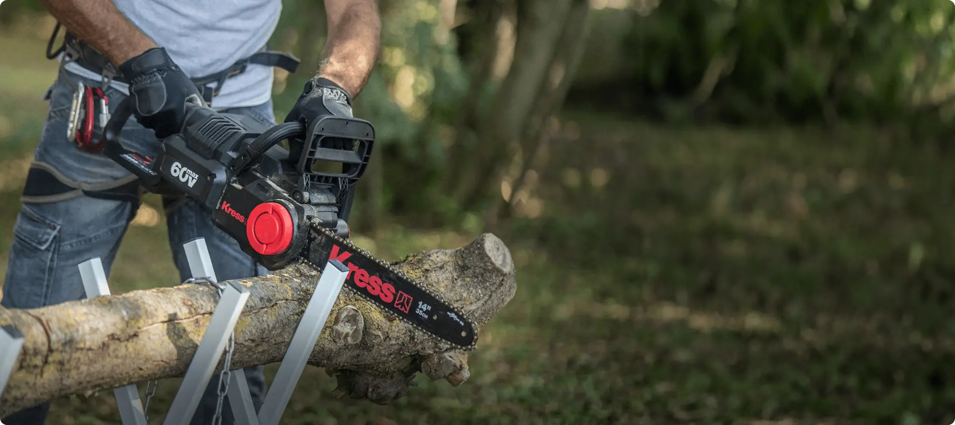 Le motoseghe a batteria Kress offrono una combinazione perfetta di potenza, precisione e sicurezza per la gestione di potature, abbattimenti leggeri e lavori di manutenzione del verde. Disponibili nelle gamme 40V e 60V Professional, garantiscono prestazioni elevate senza i limiti di un motore a scoppio.