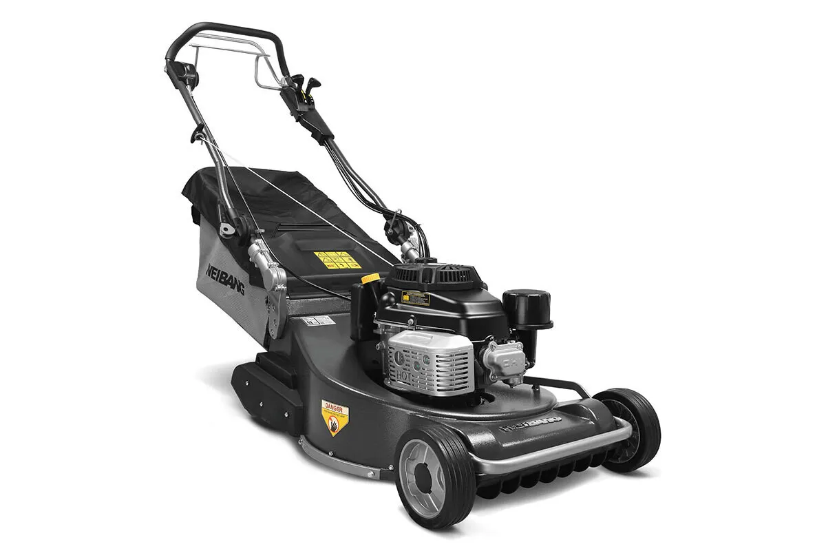 Tagliaerba professionali a scoppio per uso intensivo su grandi superfici, con scocche in acciaio o alluminio, sistema 3-in-1 e trasmissioni a più velocità.