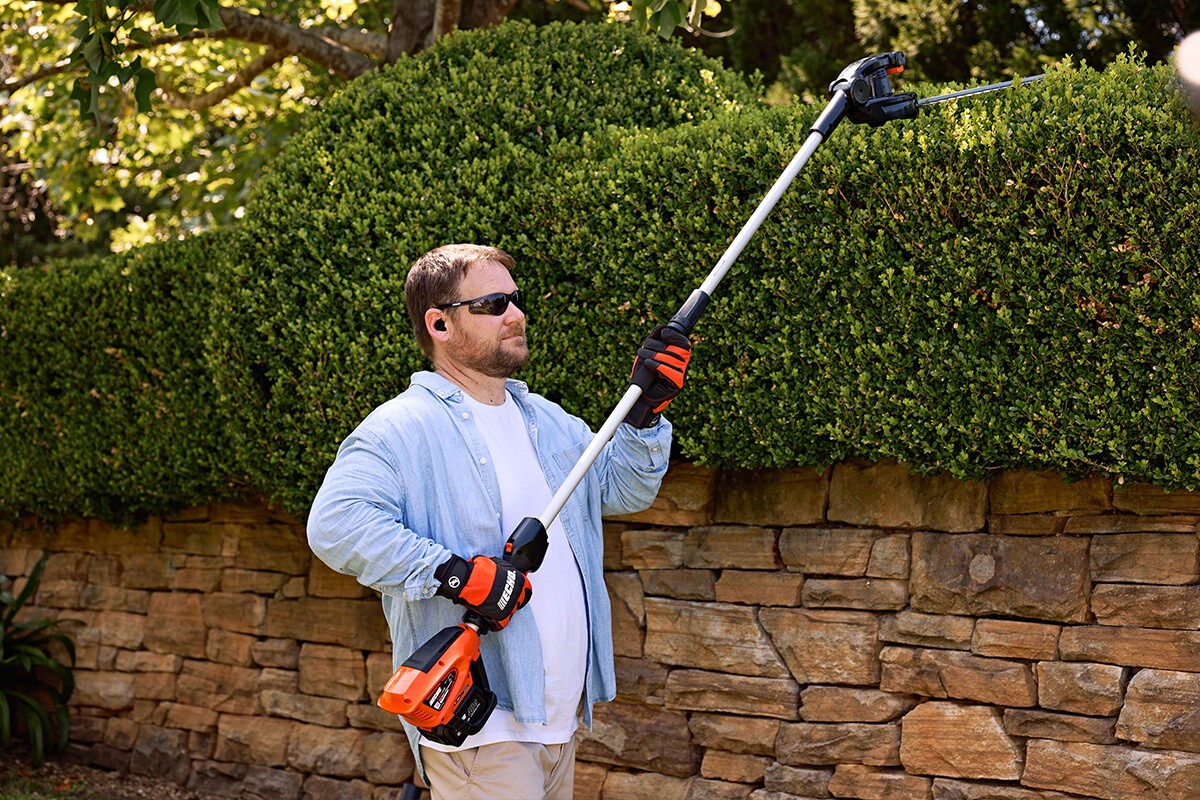 Tagliasiepi ad asta a batteria con alimentazione a 40 V e lunghezza totale di 2,46 metri, progettato per raggiungere siepi alte senza fatica e senza l’ausilio di scale. L’angolazione di taglio è regolabile rapidamente per adattarsi alle diverse esigenze di lavoro, dalla rifinitura verticale al taglio in piano. La lama da 488 mm garantisce precisione su siepi di media dimensione, mentre il peso a secco di 3,6 kg contribuisce alla maneggevolezza durante l’utilizzo.